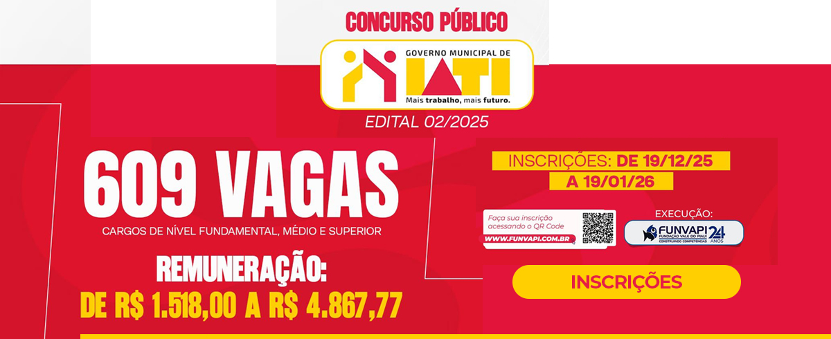 Av. Tabelião Manoel Tenório, s/n CEP: 55345-000 – Palheiros – Iati / PE Telefone: (87) 9 8141.5041 E-mail: prefeitura@iati.pe.gov.br Atendimento ao público: Segunda a Sexta, das 7h às 13h